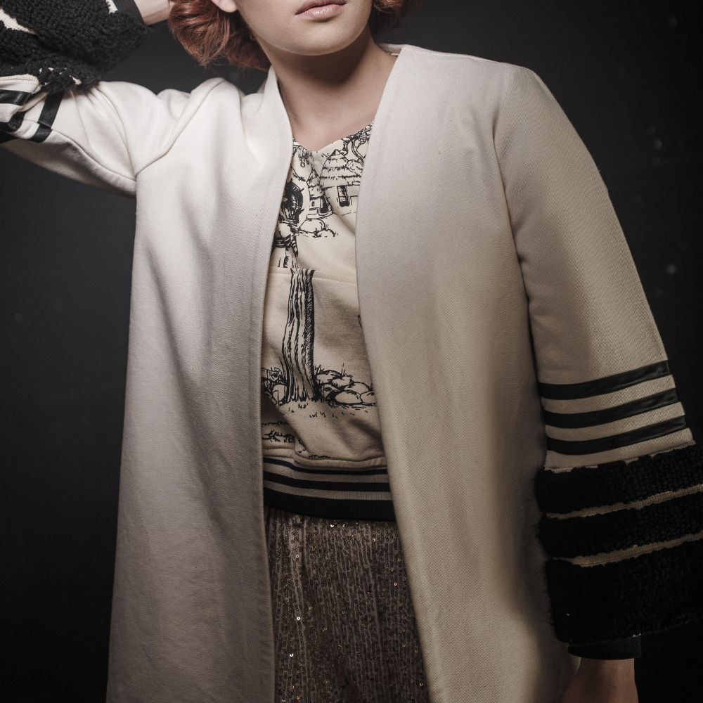 | 100% cotton bull denim Umbhaco with hand tufted sleeves.